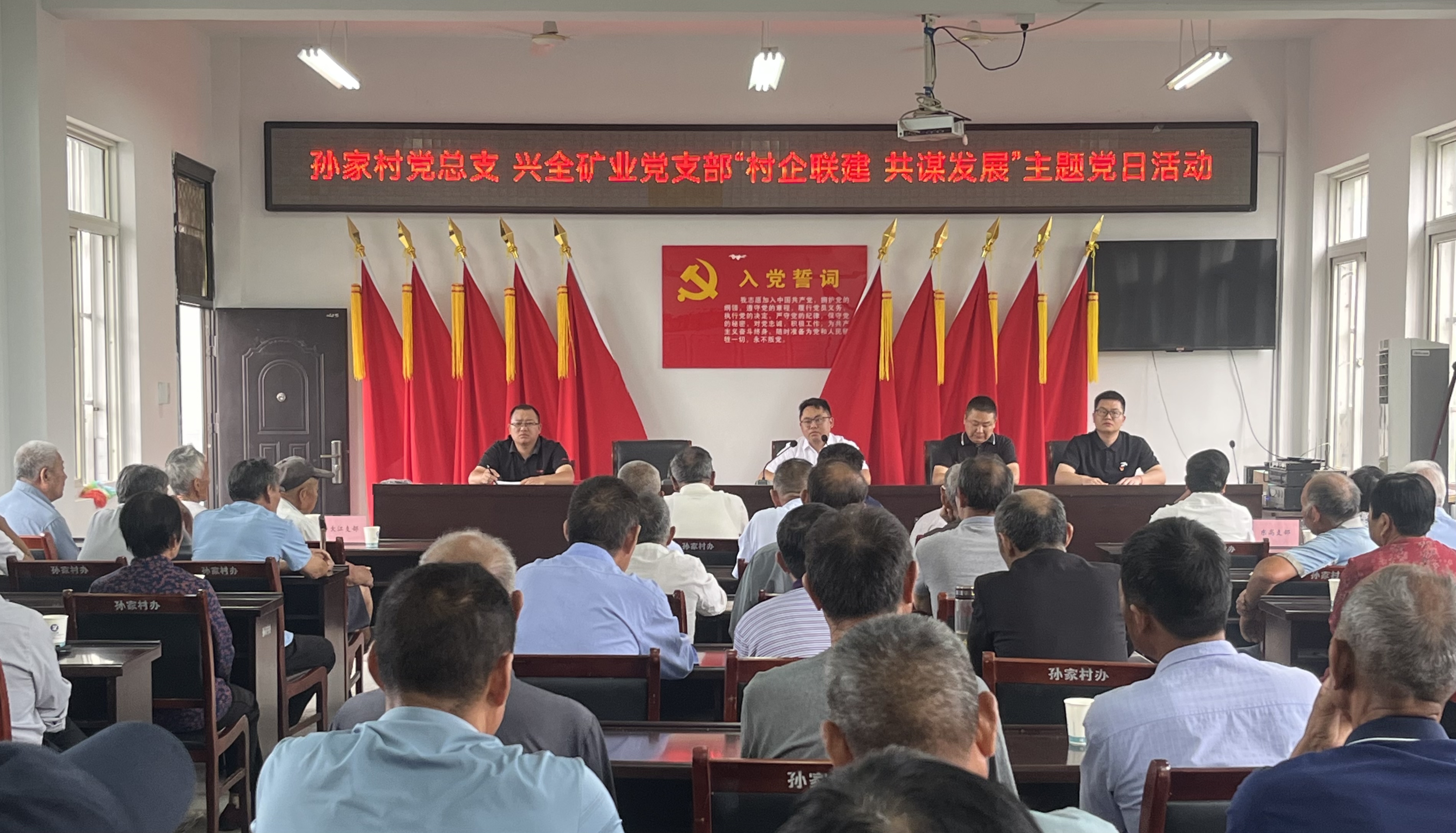 全體黨員緊握右拳,面向鮮紅的黨旗重溫了入黨誓詞;在全體黨員的見證下,孫家村黨總支書記趙陽、興全礦業(yè)黨支部副書記許登科向7位老黨員同志頒發(fā)了“光榮在黨50周年”紀(jì)念章,激勵(lì)廣大黨員進(jìn)一步堅(jiān)定對(duì)黨的忠誠(chéng)熱愛和為共產(chǎn)主義事業(yè)奮斗終身的理想信念。