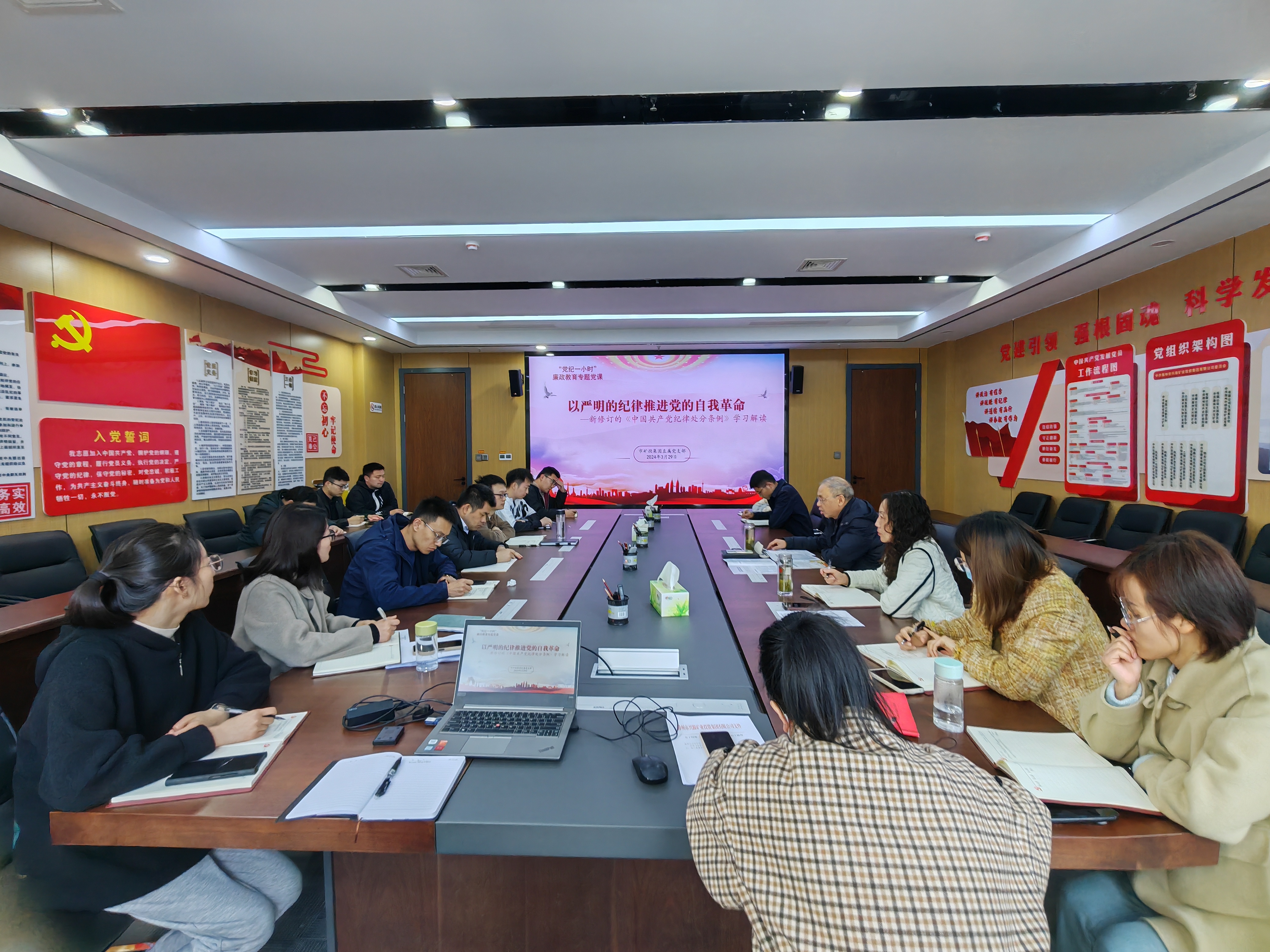 為進一步學(xué)深悟透習(xí)近平總書記關(guān)于黨的自我革命的重要思想,推進全面從嚴治黨向縱深發(fā)展,3月29日,市礦投集團以學(xué)習(xí)貫徹新修訂的紀(jì)律處分條例為契機,開展“黨紀(jì)一小時”宣講教育活動。市礦投集團黨委委員、駐市礦投集團紀(jì)檢監(jiān)察組組長芮金保以“以嚴明的紀(jì)律推進黨的自我革命“為題,圍繞學(xué)習(xí)解讀新修訂《中國共產(chǎn)黨紀(jì)律處分條例》進行宣講。
