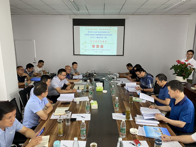 與會人員踏勘了礦山現(xiàn)場,并聽取了興全礦業(yè)公司總經(jīng)理陳昌富對馬塘湖整合礦區(qū)建筑石料用灰?guī)r礦的情況介紹及設(shè)計單位中鋼馬礦院對可行性研究報告編制情況的匯報。與會專家通過征詢參會單位意見、專家組內(nèi)部討論相結(jié)合的方式,分別從礦區(qū)功能區(qū)布置、開拓系統(tǒng)、外運道路設(shè)計、實測實量等方面,對可行性研究報告進行了全面審查論證,一致認為可行性研究報告內(nèi)容及深度符合相關(guān)要求,同意通過審查,并要求我司會同設(shè)計單位中鋼馬礦院按照專家意見修改完善。 滁州市經(jīng)濟和信息化局、全椒縣經(jīng)濟和信息化局作為主管部門要求設(shè)計方案符合礦山實際情況,同時要以可行性研究報告作為依據(jù)編制后續(xù)設(shè)計方案。張李明代表市礦投公司和興全礦業(yè)公司,對專家組提出的寶貴意見表達了感謝,并要求興全礦業(yè)公司及設(shè)計單位嚴格按照專家組的意見和建議進行論證修改??尚行匝芯繄蟾骓樌ㄟ^審查,為興全礦業(yè)公司下步工作推進奠定了堅實基礎(chǔ)。