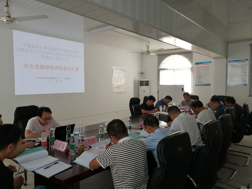 會(huì)議前專家組一行前往巢東礦區(qū)首采區(qū)逐一查看安全設(shè)施的建設(shè)情況,隨后在會(huì)議室分別聽取巢東礦業(yè)公司關(guān)于項(xiàng)目建設(shè)和試運(yùn)行情況介紹、瑯琊山礦業(yè)工程公司關(guān)于項(xiàng)目建設(shè)施工情況介紹、華東冶金勘查局八一一地質(zhì)隊(duì)關(guān)于《安全設(shè)施驗(yàn)收評(píng)價(jià)報(bào)告》的介紹,期間專家組針對(duì)現(xiàn)場(chǎng)、驗(yàn)收評(píng)價(jià)報(bào)告以及其他軟件資料給予充分的認(rèn)可,同時(shí)對(duì)存在的問題進(jìn)行點(diǎn)評(píng),并要求驗(yàn)收評(píng)價(jià)單位對(duì)報(bào)告進(jìn)一步修改、完善。