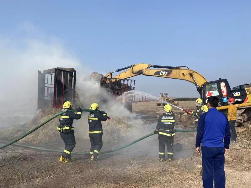 11月16日中午12時(shí)許,澗溪鎮(zhèn)姚郭村澗官路路口一輛滿載稻草的貨車不慎刮到路邊高壓電線引發(fā)稻草著火,情急之下,貨車司機(jī)將車輛開往巢東礦區(qū)磅房尋求救援。興明礦業(yè)總經(jīng)理王秀超得知火情后,立即啟動(dòng)火災(zāi)應(yīng)急預(yù)案,安排磅房工作人員撥打119火警電話,并在短短的3分鐘內(nèi)抽調(diào)了巢東礦區(qū)10余名工作人員、2臺灑水車和1臺挖掘機(jī),第一時(shí)間趕往現(xiàn)場救援。興明礦業(yè)職工冒著滾滾濃煙,沖進(jìn)火場現(xiàn)場,克服煙熏火燎等重重困難,奮力滅火,在消防官兵趕到前,有效阻止了火勢蔓延。隨后在與消防救援專業(yè)人員協(xié)同下,經(jīng)過1個(gè)多小時(shí)的不懈努力,終于把大火撲滅。
