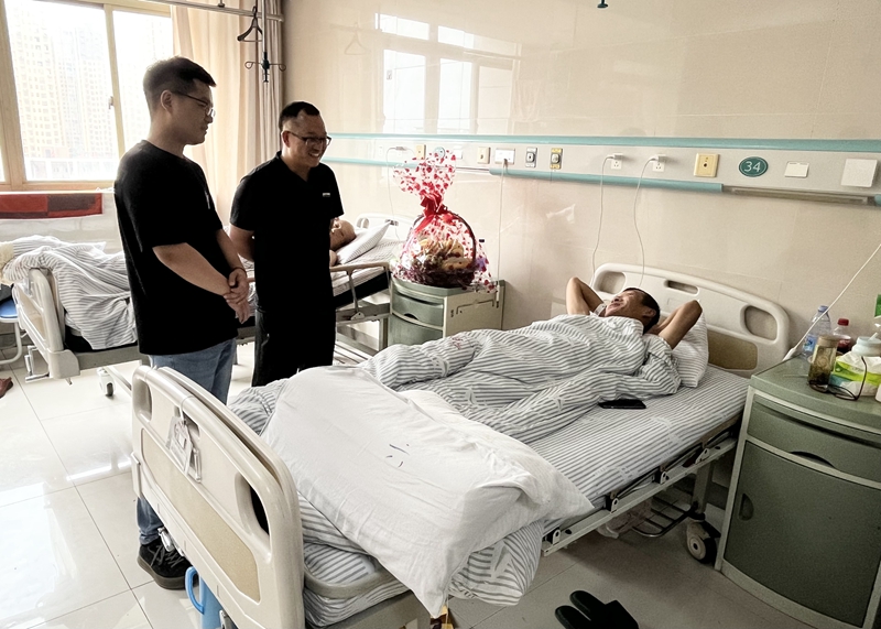 生產(chǎn)運(yùn)營部經(jīng)理儲(chǔ)彪代表公司轉(zhuǎn)達(dá)了對(duì)患病職工的關(guān)心,并詳細(xì)了解治療恢復(fù)情況,囑咐他要保持良好心態(tài),積極配合醫(yī)院的治療,爭取早日康復(fù),回歸工作崗位。